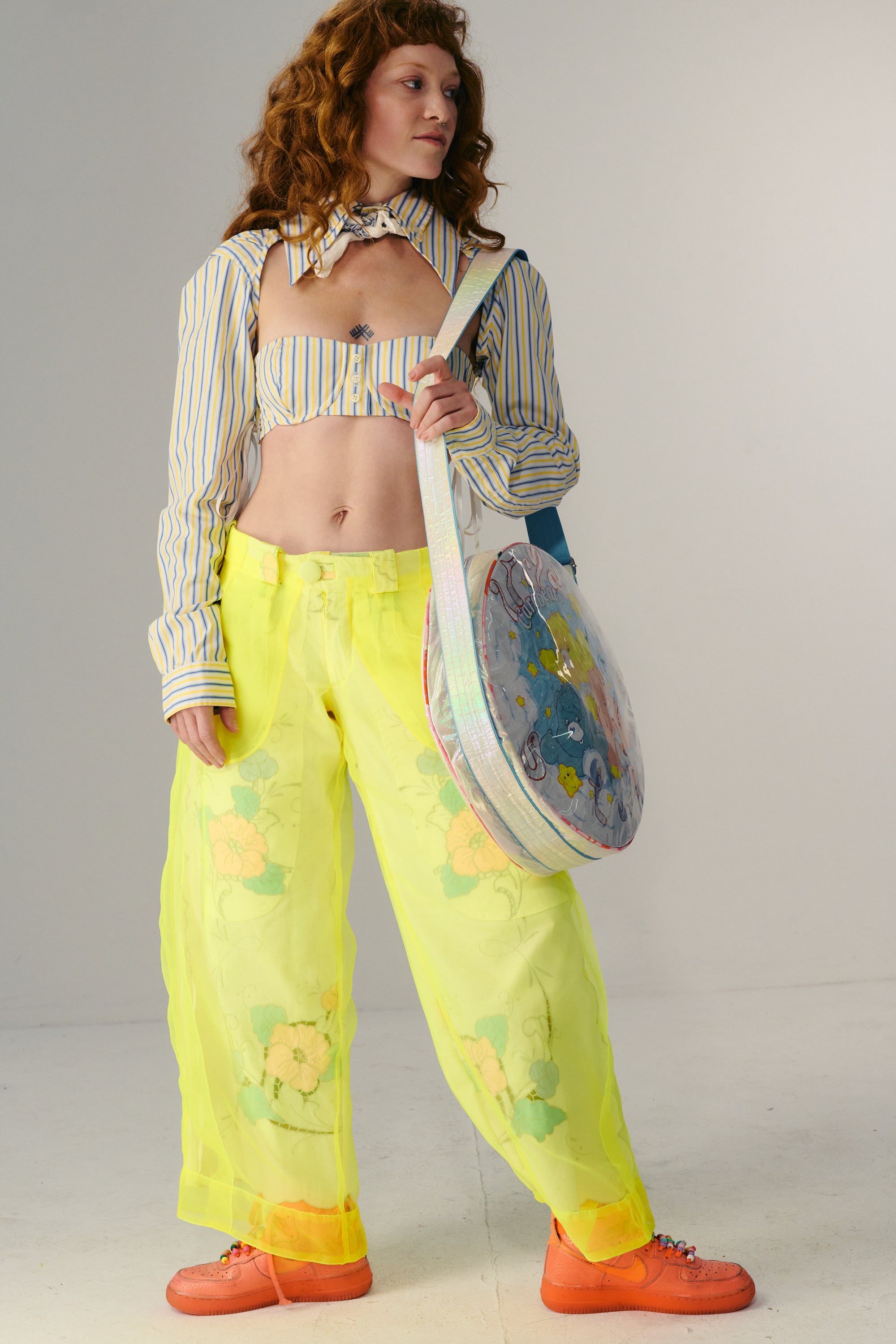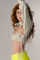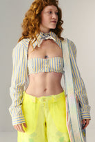 This up-cycled Ralph Lauren shirt corset from Itiya Studio features plastic boning for a flattering fit and metal eyelet detailing for side rib lace-up. The fastening is highly adjustable and can be customized for different body types.