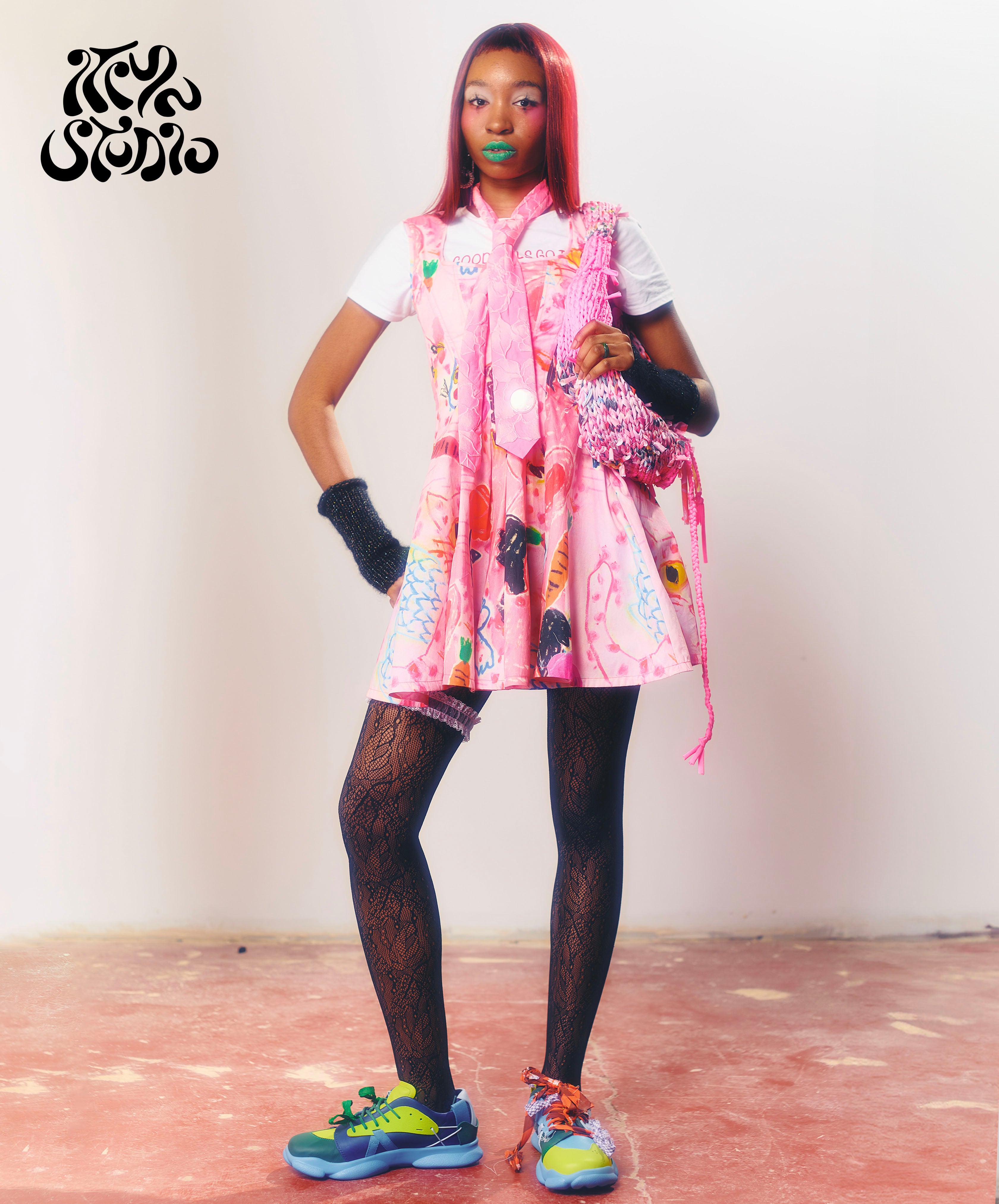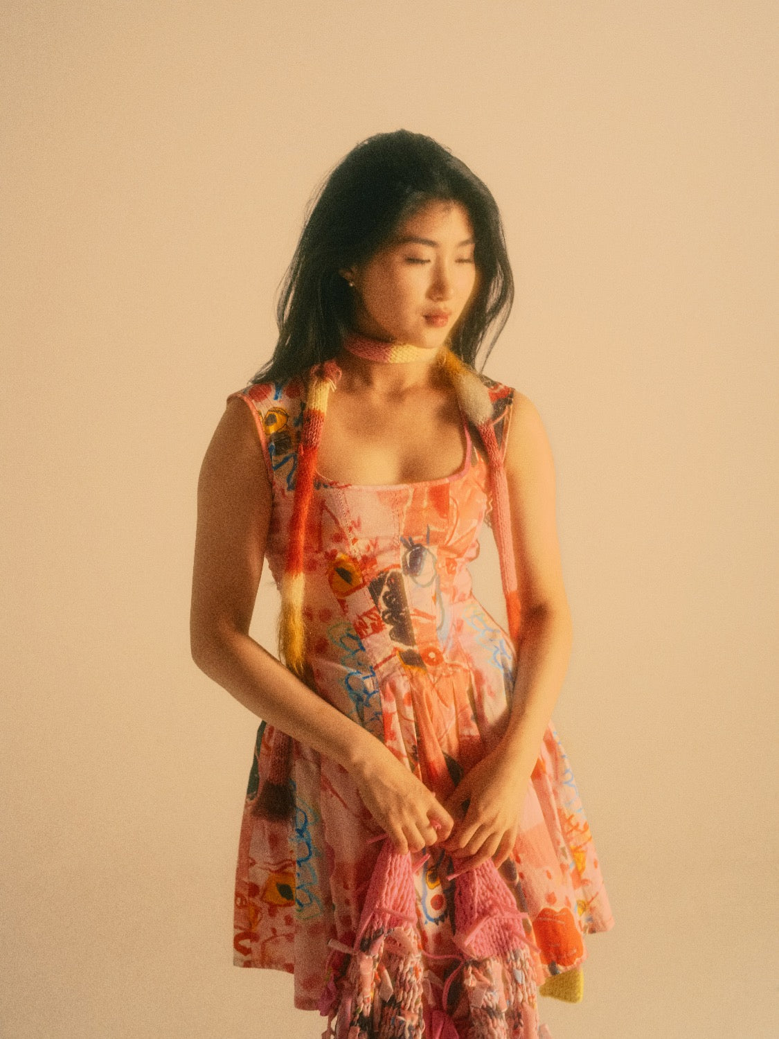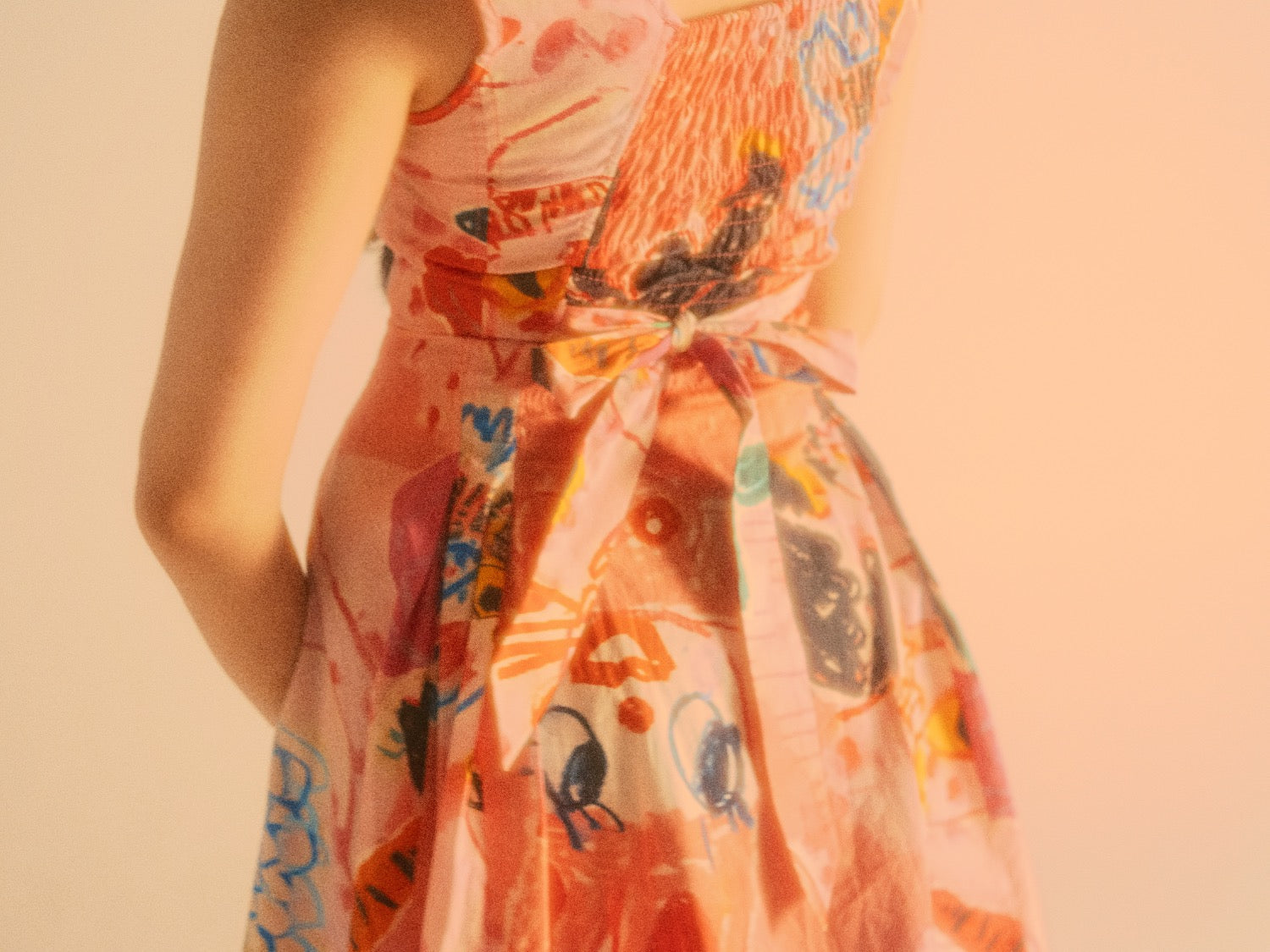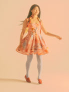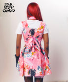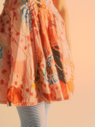 This Pink Bella Dress is a perfect combination of art and science. Designed with a poplin fabric featuring artwork by I Scream Colour and textile by Itiya, it boasts a low cut fitted panelled bodice that flares out to a super swishy skirt. The bodice is expertly topstitched in fluorescent pink and features bias bound seams, creating a flattering structure. The dress also has a rushed elastic back and fabric ties for added comfort. Made from 100% custom printed cotton, each dress is subtly unique. It fits true to size, but you may consider sizing down if unsure. Model