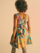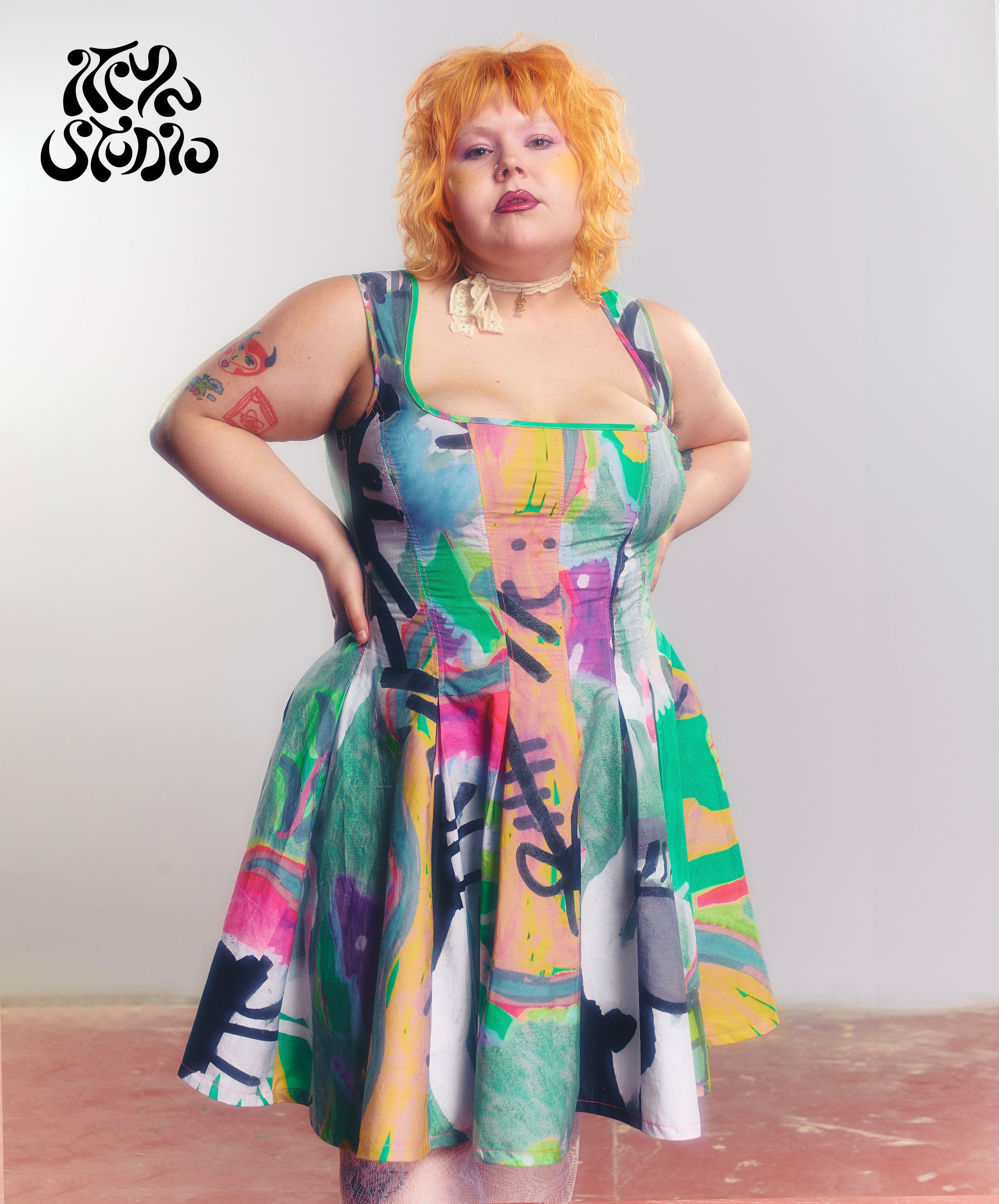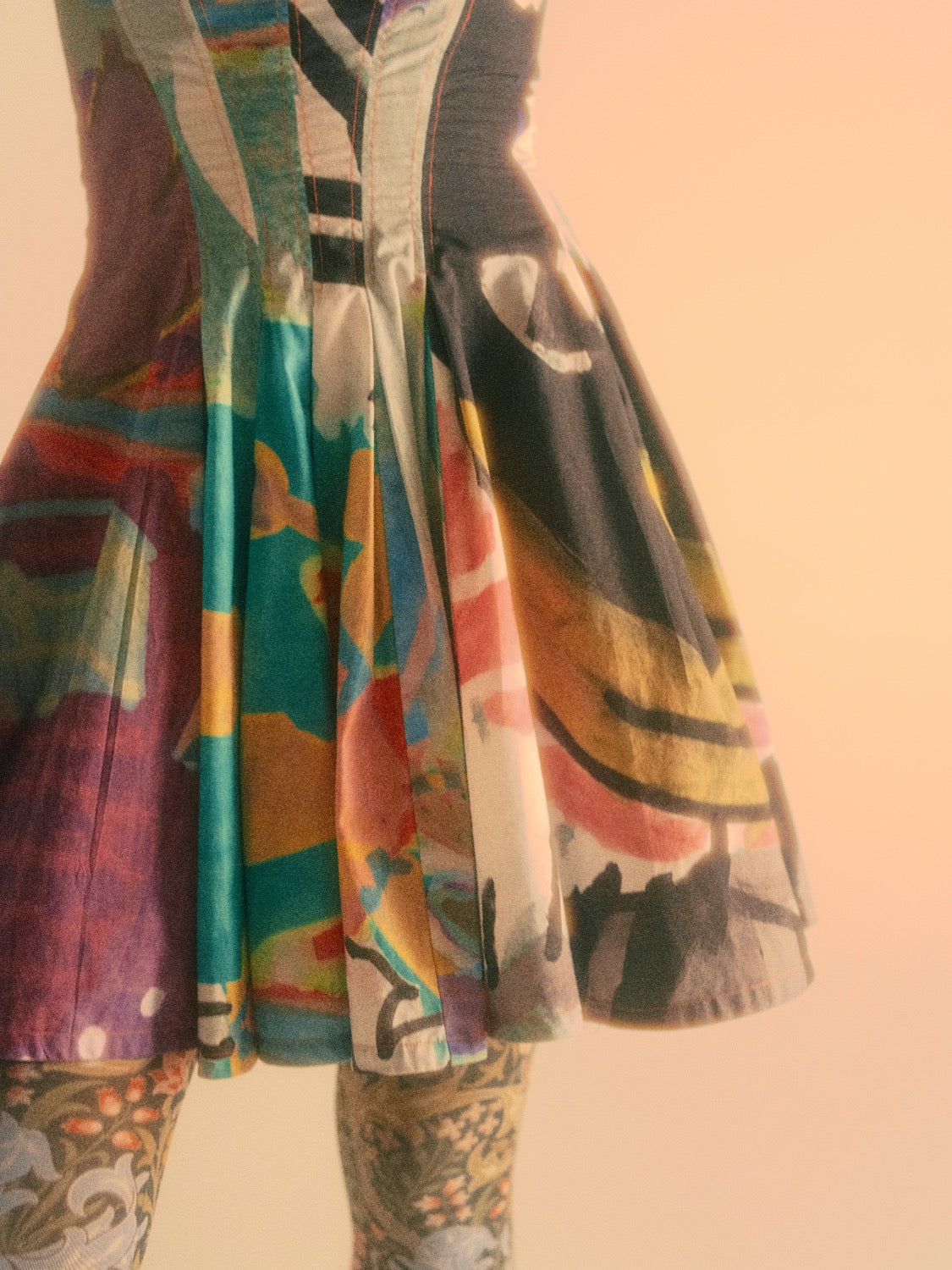 Poplin fabric dress with artwork by Itiya's 10 year old brother, textile designed by Itiya.