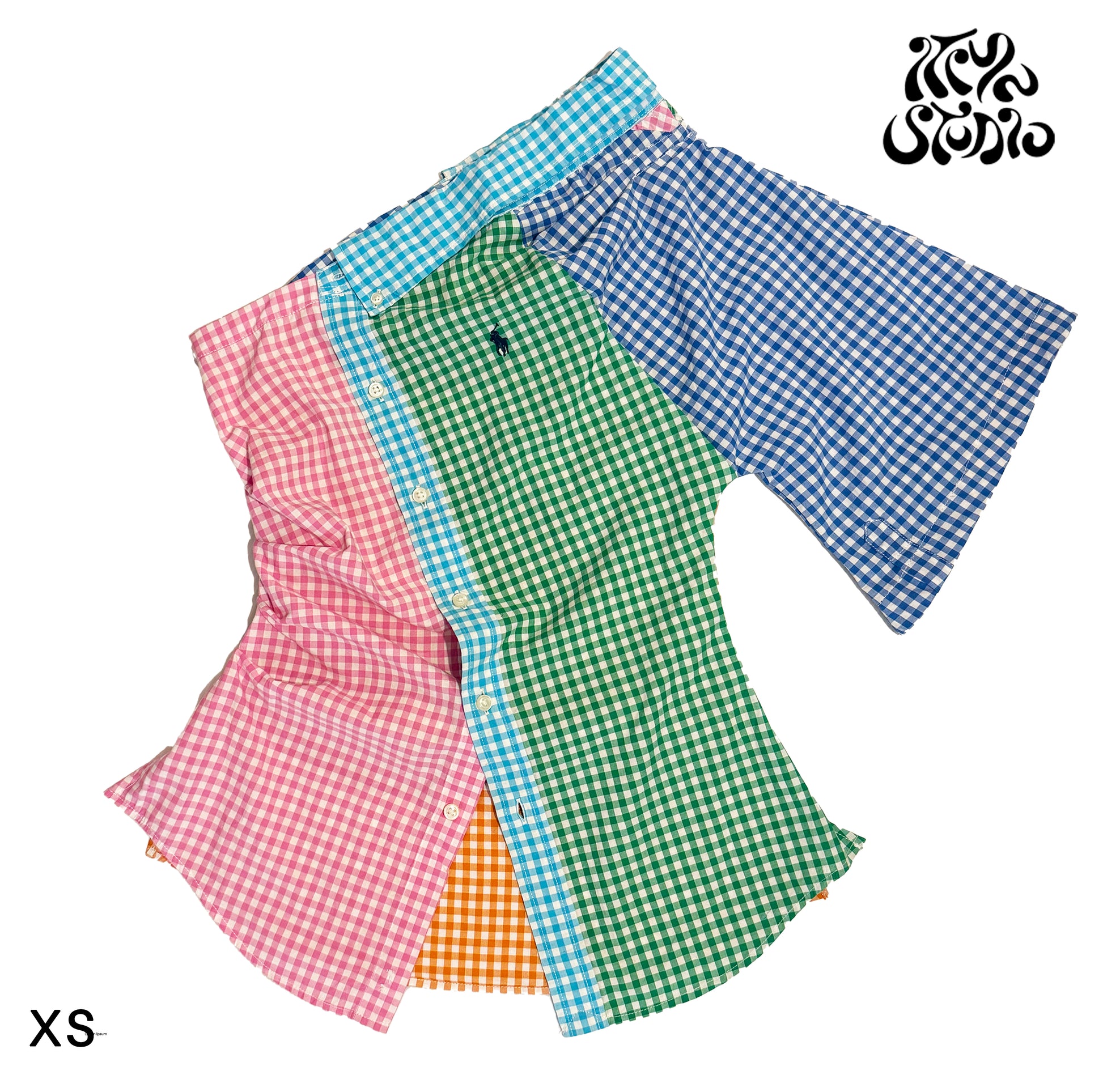The blue striped shirt has slight discolouring in the front reflected in the price